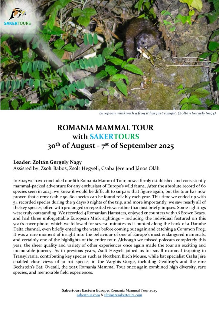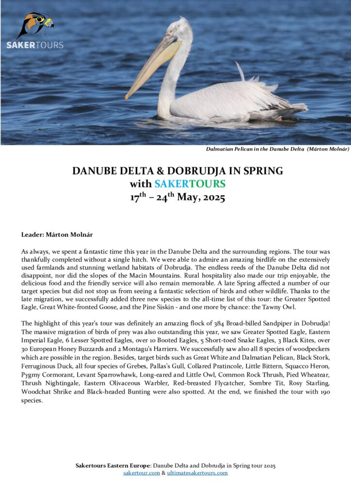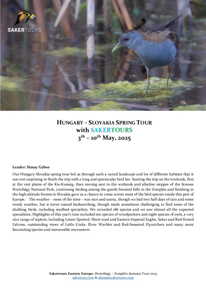These trip reports are from our recent tours. Most of our partner companies and guests do not prepare a detailed tour report but these should be able to give you an idea about our birdwatching holidays.
