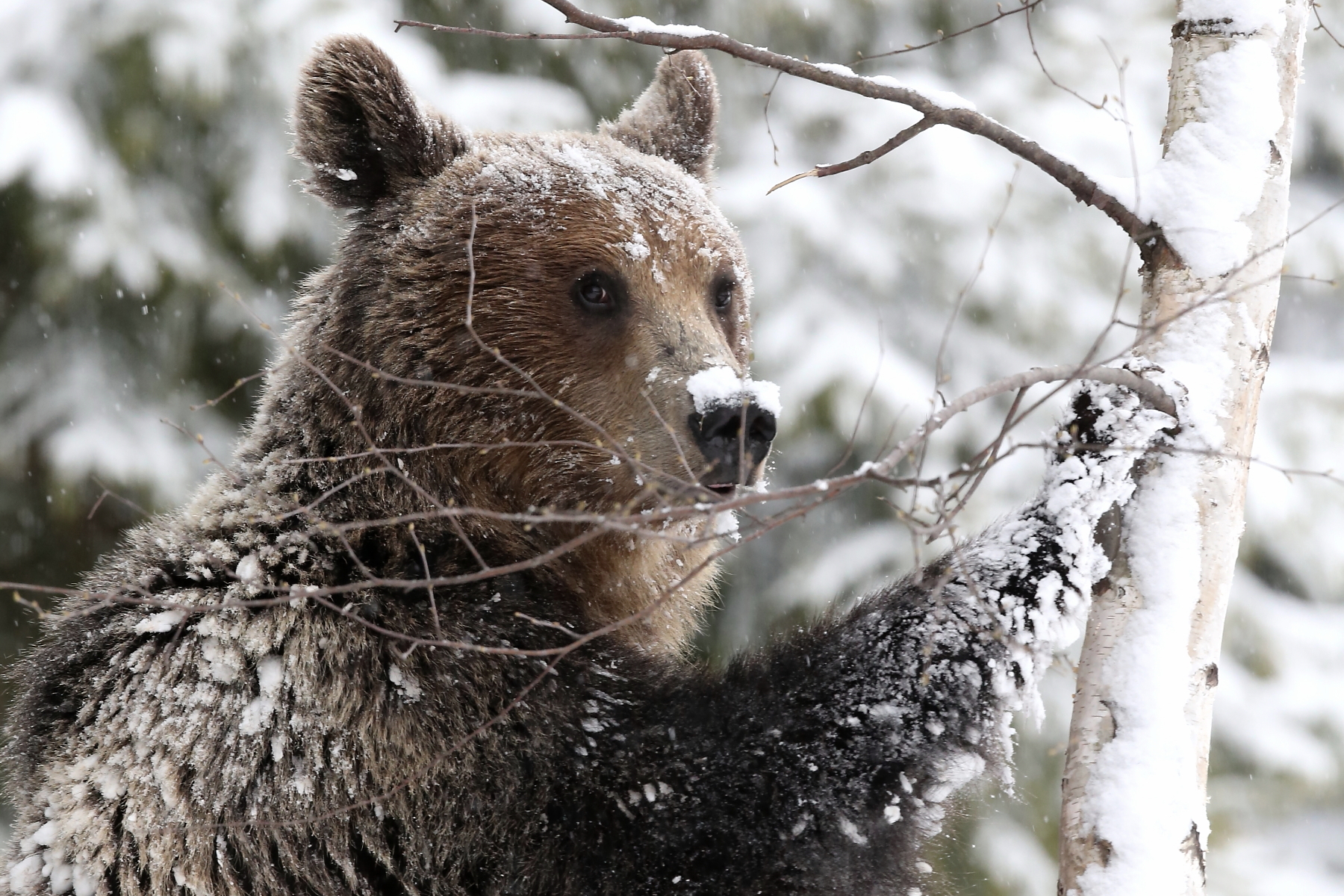 We have three full days for photography allowing plenty of chances to capture bear photos in snow! We have several hides with different surroundings but our actual usage of hides depends on the current bear activity but especially snow. Some of the higher elevation hides, like our ‘pool hide‘ has the best cahnce for snow. We will use the hide which has the best chance for bears and snow!